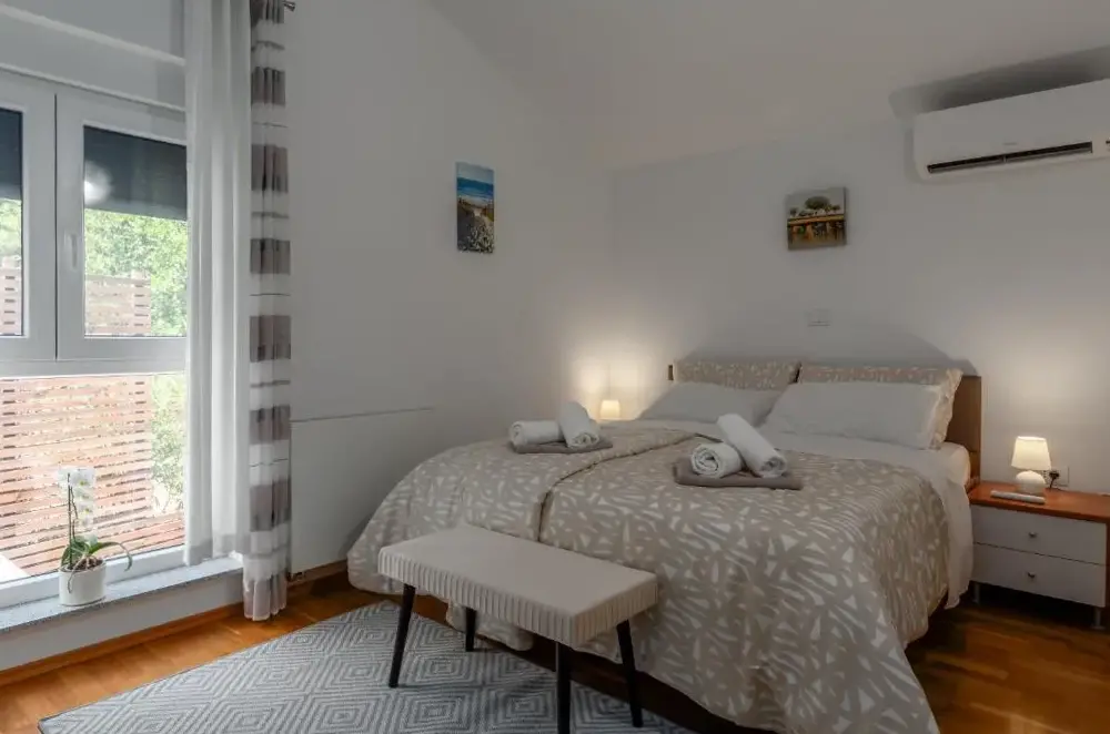 More information about Apartman Diamond PulaVilla Zeus offers free Wi-Fi, secure on-site parking, air conditioning throughout each unit, and outdoor BBQ facilities for guests who wish to cook al fresco. Relax by the private outdoor swimming pool before exploring the area’s attractions. Just seven minutes away by car lies the Istrian Museum of Contemporary Art, showcasing modern Croatian works within a striking industrial setting.