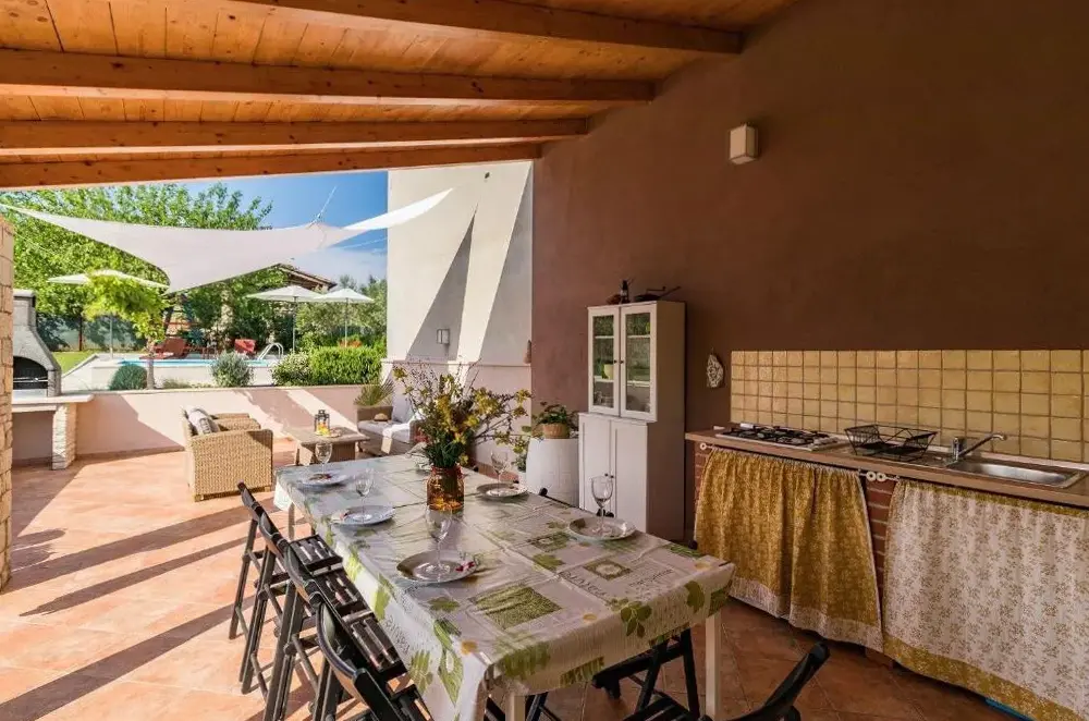More information about Spacious holiday house StefiThis beachfront home in Pula offers free Wi-Fi, secure on-site parking, air-conditioned interiors, and direct access to the shoreline. Guests can enjoy outdoor cooking via dedicated BBQ facilities while relaxing beside a private swimming pool.