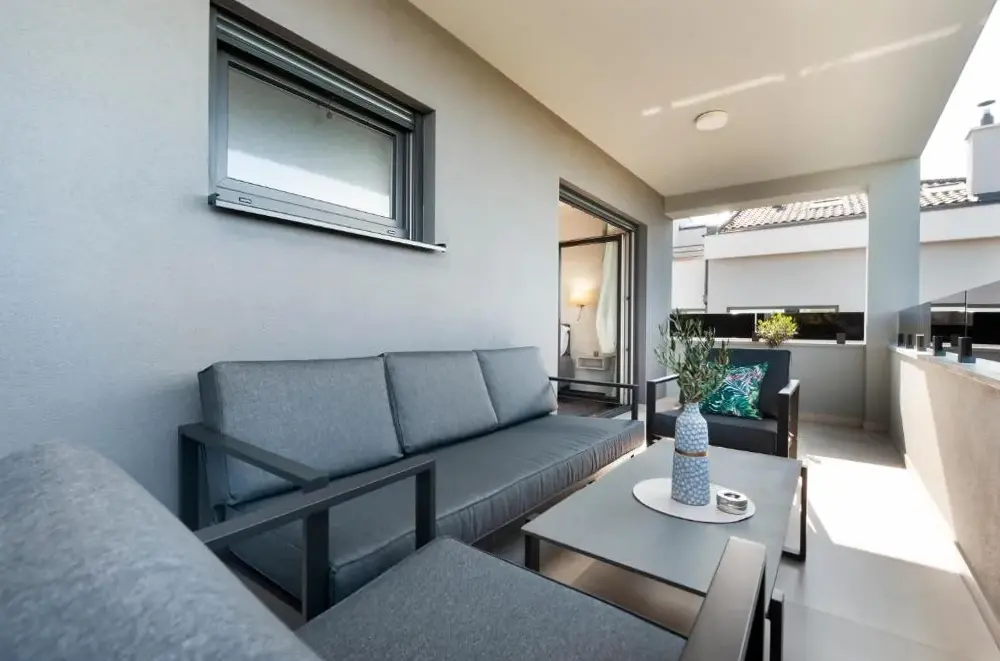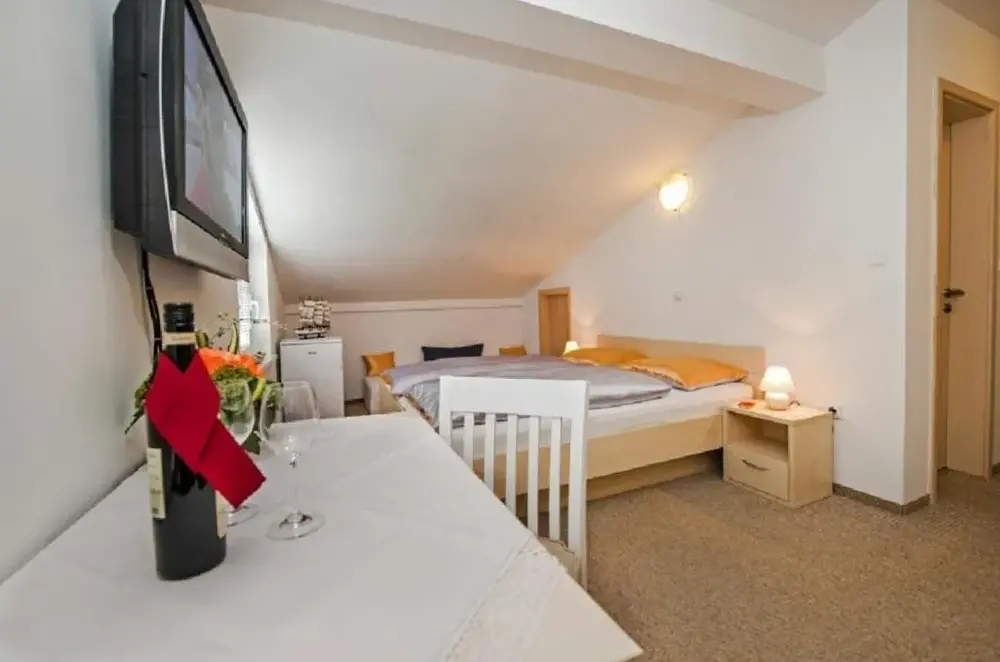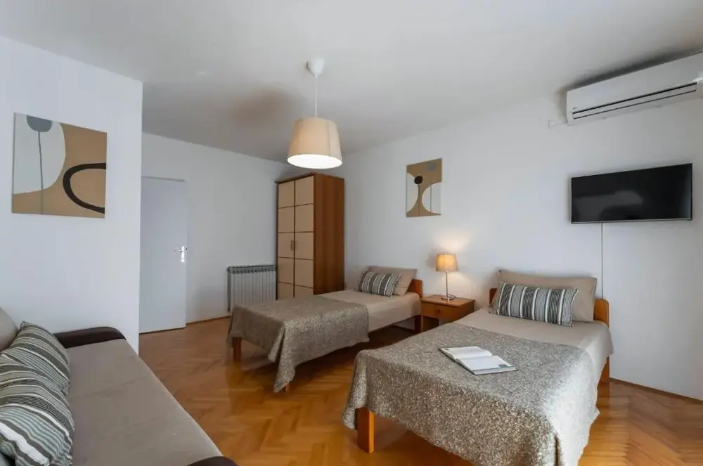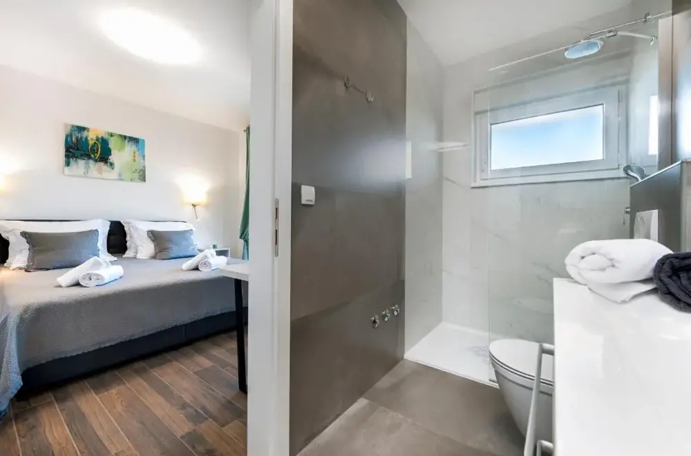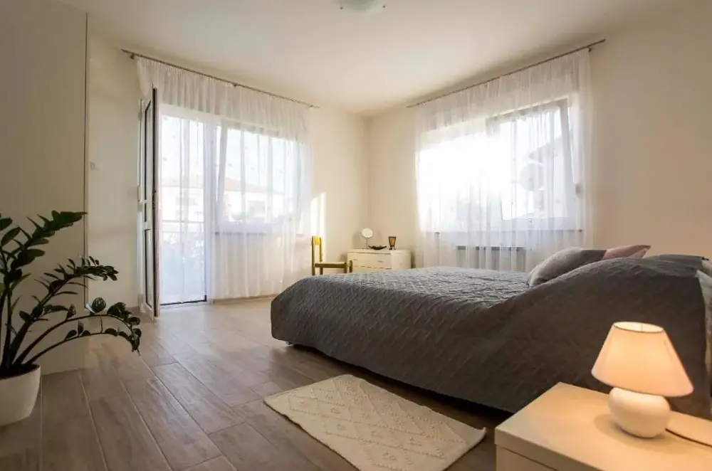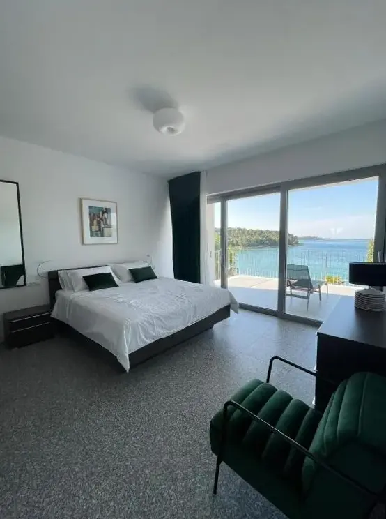 More information about Room in Rovinj with air conditioning, Wi-Fi (230-4)Buric House’s M Suite offers spacious living with a 95-square-meter interior paired with a private 54-square-meter terrace, providing ample outdoor space for relaxation. Guests benefit from free Wi-Fi throughout, secure on-site parking, and beachfront access, ensuring convenience without sacrificing proximity to the water.