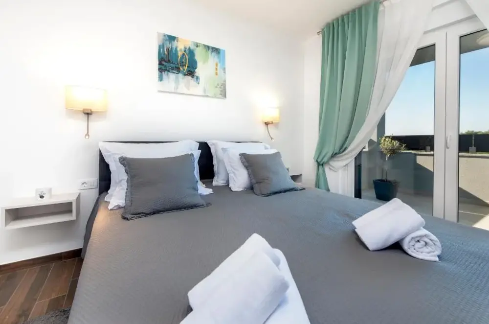 More information about Apartment Maeîstro by Privileggio ResidenceThis room in Rovinj offers free Wi-Fi, secure on-site parking, outdoor BBQ facilities, and central heating for year-round comfort. Located along the Istrian coast, guests can explore Punta Corrente Park just three minutes away by car, covering two kilometers of scenic trails through Mediterranean landscapes.
